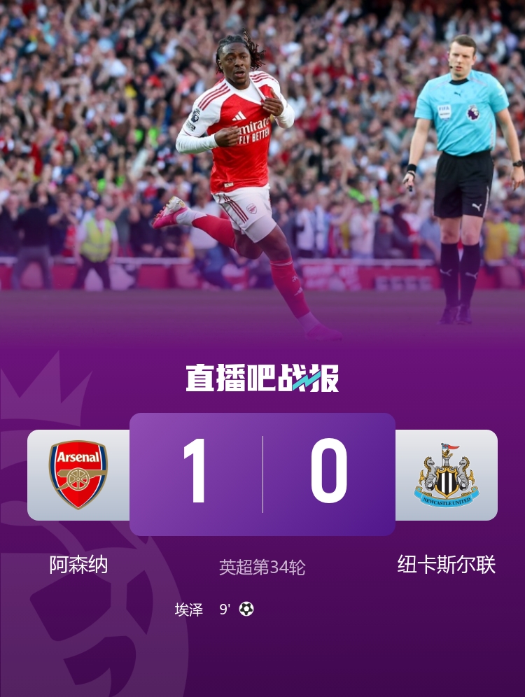 重回榜首!阿森纳1-0纽卡止两连败 埃泽哈弗茨连线破门后双双伤退