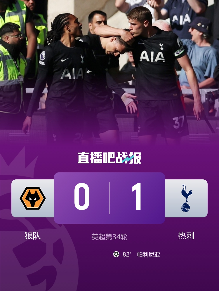 近16轮首胜!热刺1-0狼队仍处降级区 帕利尼亚制胜球西蒙斯疑重伤