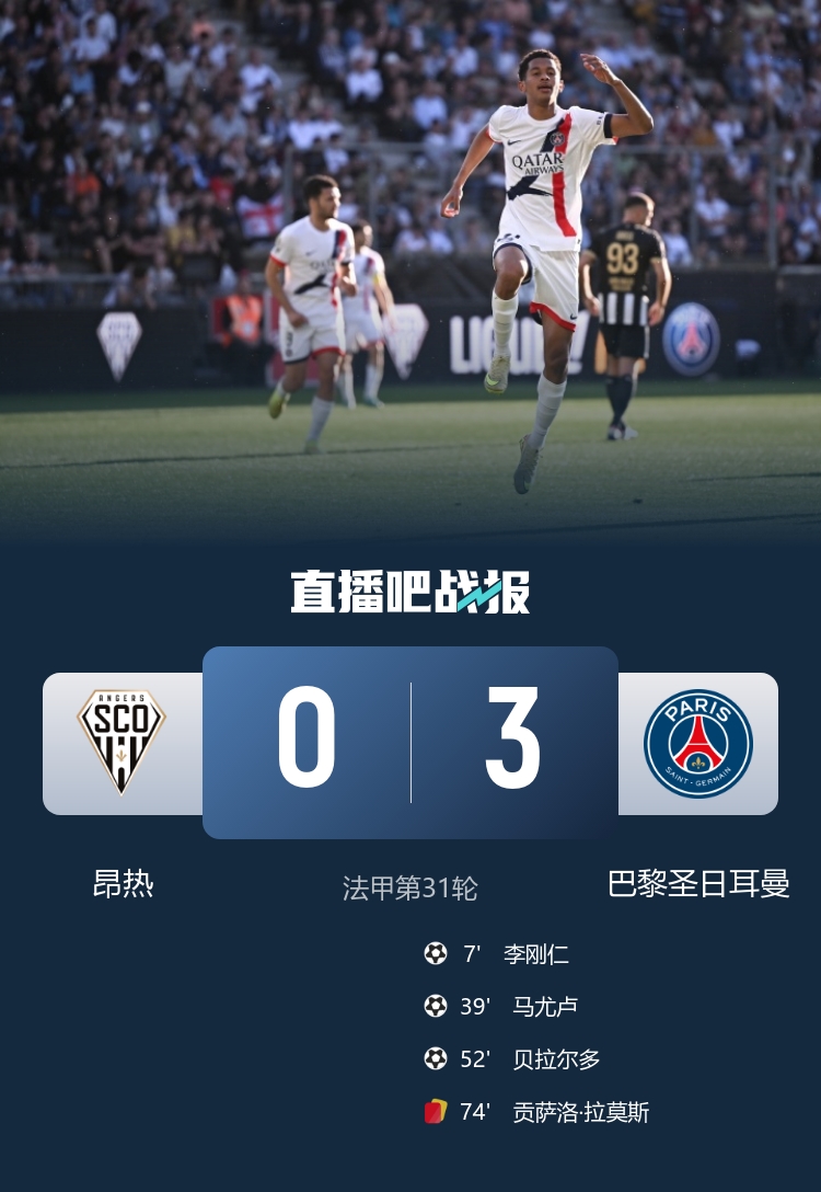6分领跑!十人巴黎3-0昂热联赛2连胜 李刚仁、贝拉尔多相继传射