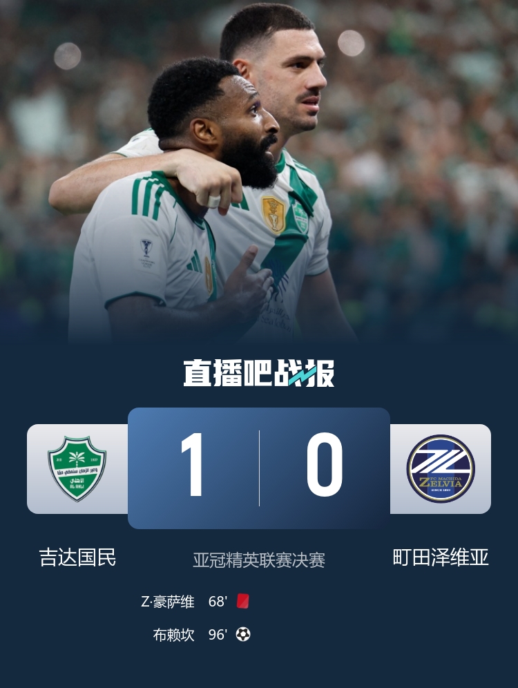 今日凌晨进行的亚冠精英联赛决赛,吉达国民加时1-0战胜町田泽维亚夺得冠军。凭借这场胜利,吉达国民实现在亚冠精英联赛中的卫冕,上赛季的决赛中他们2-0战胜同样来自日本的川崎前锋夺冠。