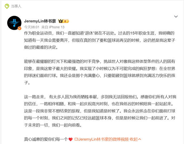 2025年8月31日,林书豪在社交媒体宣布退役。