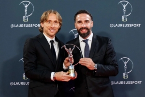 莫德里奇:“我们代表皇马感谢劳伦斯组织,我们全队都很荣幸获得这一殊荣。我们度过了一个精彩的赛季,赢得了许多奖杯,并在球场上展现了卓越的表现。皇马总是激励你达到巅峰,让你拼尽全力,就像我们上赛季所展现的那样。我们配得上这个奖项。”